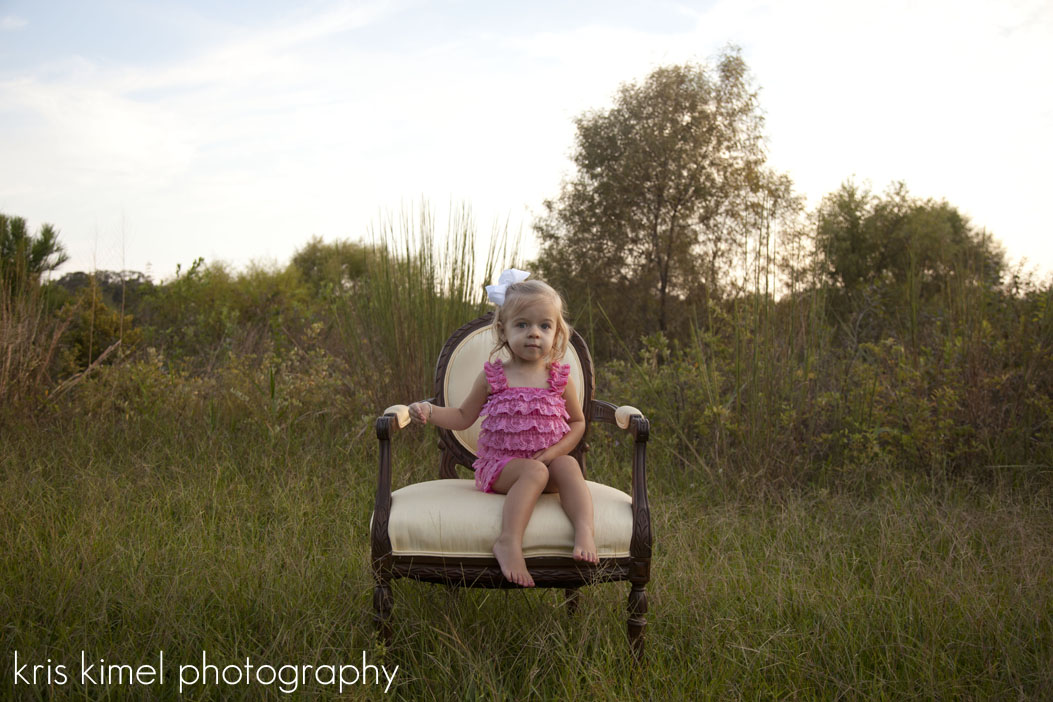 Happy Birthday to sweet Kyndall! I had the honor of getting to spend her actual birthday with her, taking her Two-Year-Old Portraits. I met Kyndall, her Mommy, Grandma and Aunt Kelly on a beautiful, golden afternoon in Southwood. We had such a great time. I love all of Kyndall’s outfits. Her Minnie Mouse romper with the ruffles- OMG! So cute.